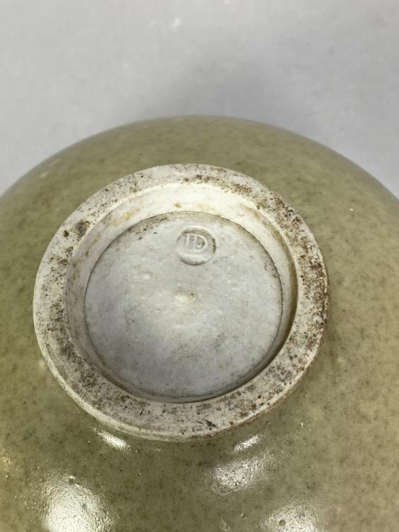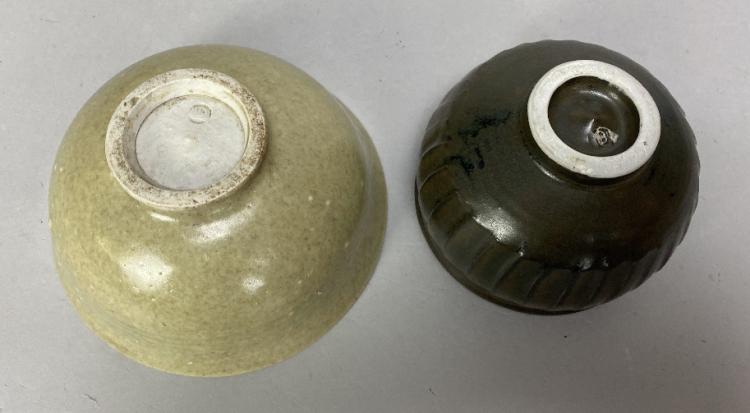 Lot 54 of 493: DAVID LEACH (1911-2005) for Lowerdown Pottery; a fluted porcelain bowl covered in bronze glaze, impressed DL mark, diameter 11cm, and a bowl covered in pale green glaze (2). (D)