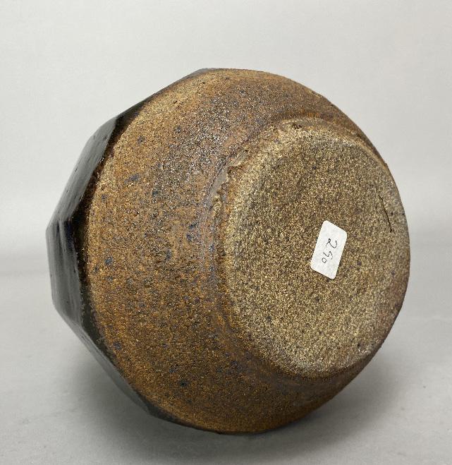 Lot 61 of 493: JANET LEACH (1918-1997) for Leach Pottery; a cut sided stoneware vase covered in tenmoku glaze, impressed JL and pottery marks, height 19cm. Provenance: The Nancy & Andrew Ramage collection; purchased from Paul Rice Gallery, London.