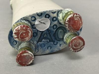 Lot 443 of 493: ALISON OGDEN; a tall porcelain footed vase with relief decoration, impressed AO mark, height 22cm. (D)