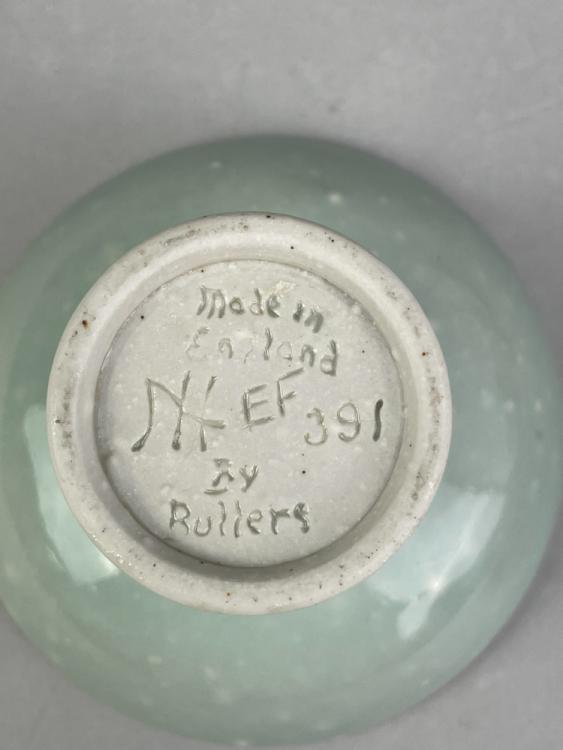 Lot 8 of 723: AGNETE HOY (1914-2000) for Bullers Studio; a group of porcelain ceramics comprising two bowls, two small vases, a pedestal vase and a small dish, various glazes, impressed marks, largest diameter 18cm (6). (D)