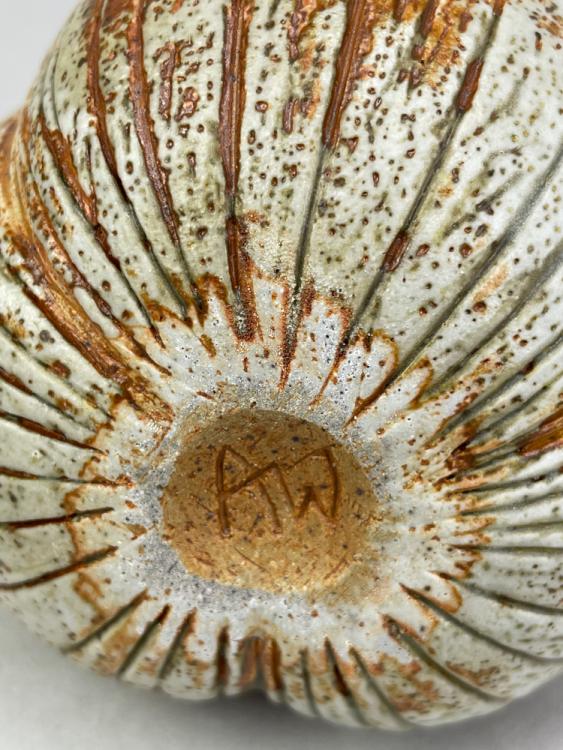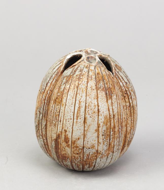 Lot 22 of 723: ALAN WALLWORK (1931- 2019); a stoneware seed pod with incised decoration, incised AW mark, height 11.5cm. (D)