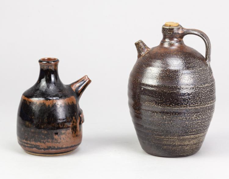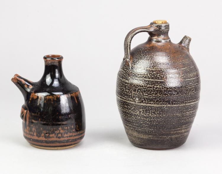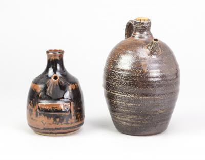 Lot 164 of 723: Aylesford Pottery; a stoneware vinegar jar, impressed marks, height 13cm, and a larger salt glazed example by another hand (2).