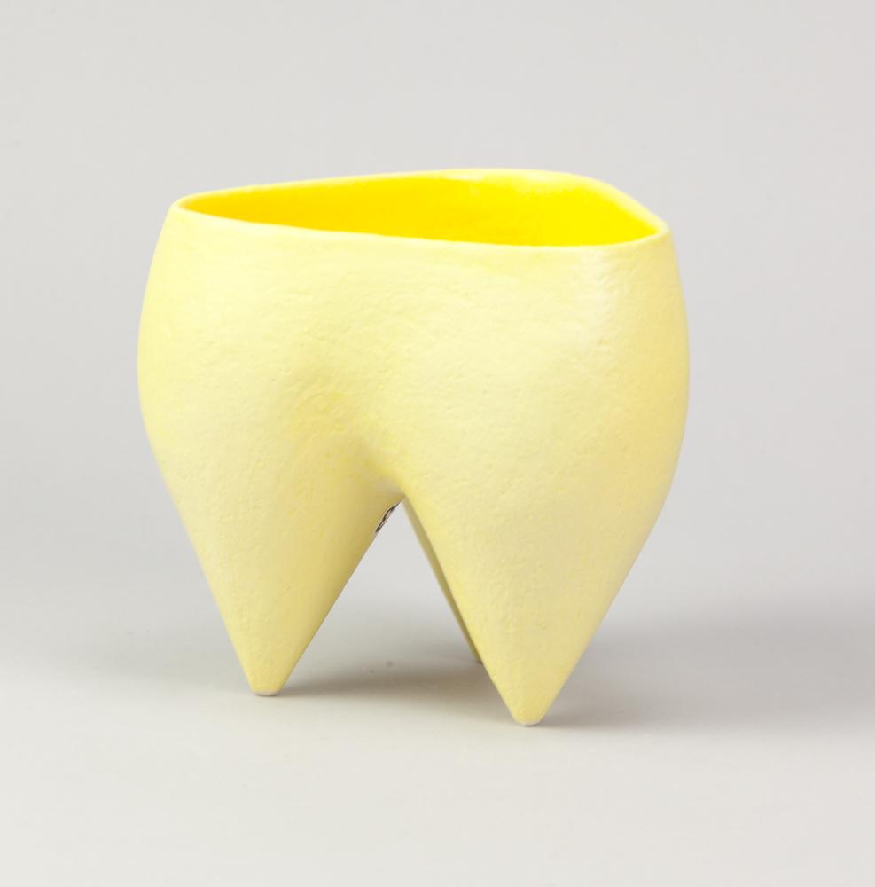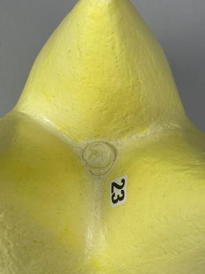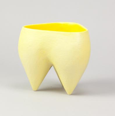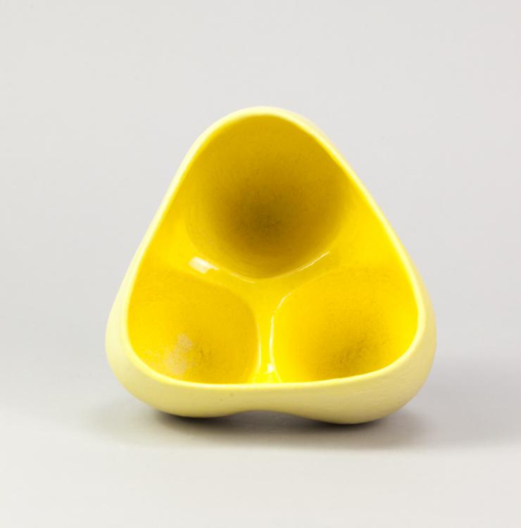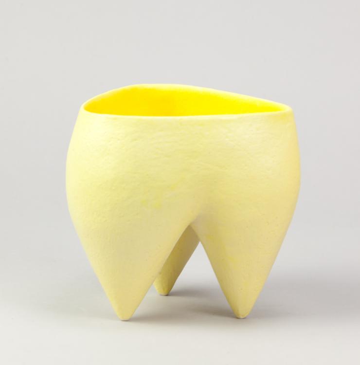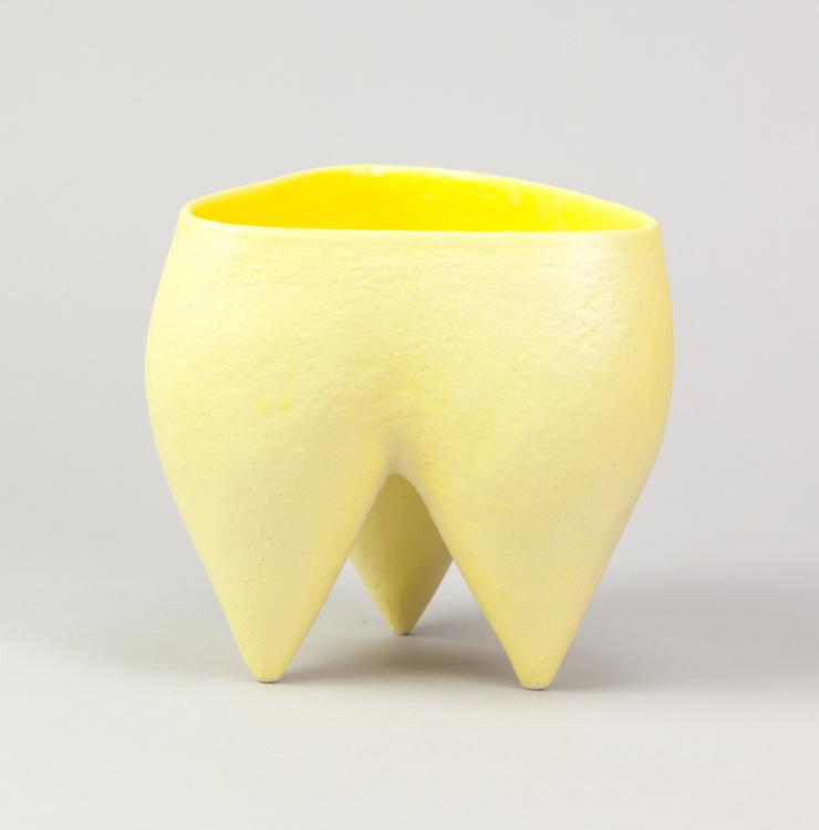 Lot 166 of 723: DEANA MOORE (born 1956); an earthenware tripod vessel covered in yellow glaze, impressed DM mark, height 14cm. (D)