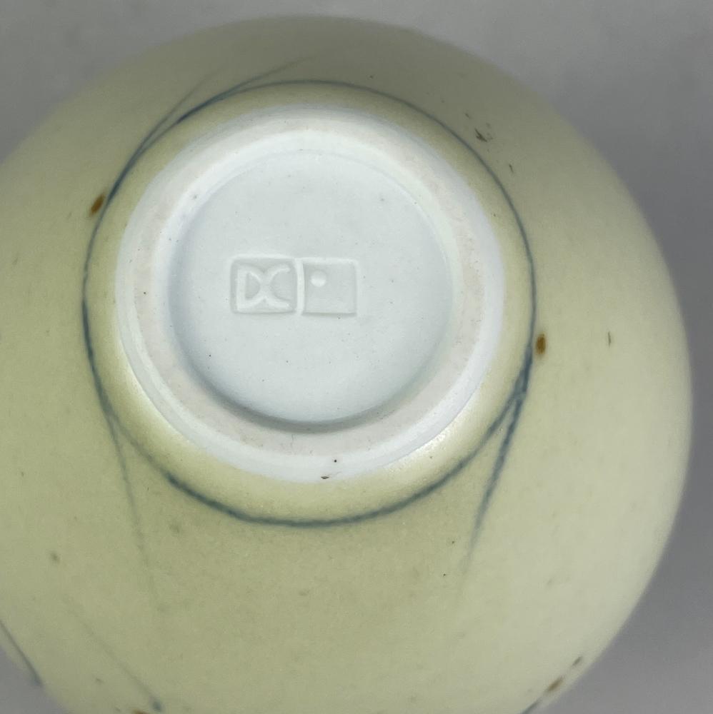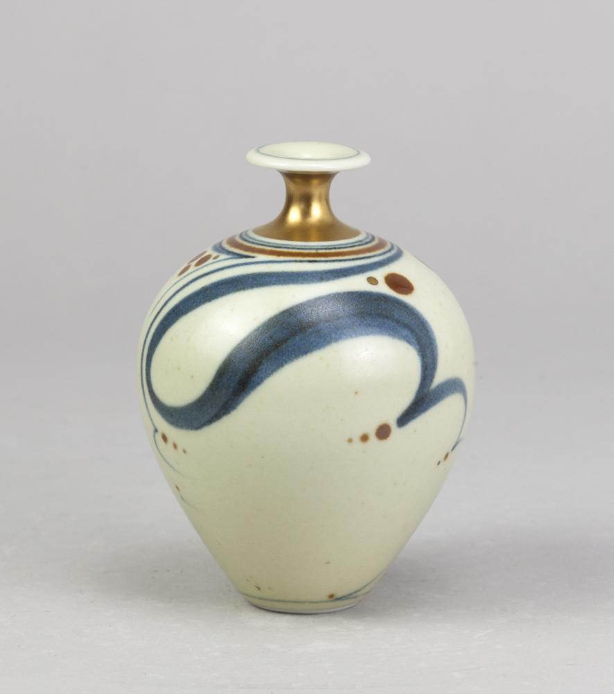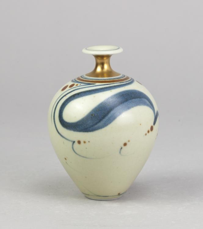 Lot 167 of 723: DEREK CLARKSON (1928-2013); a porcelain bottle covered in celadon glaze with cobalt and iron decoration, impressed DC and year marks, made 1990, height 12cm. (D)