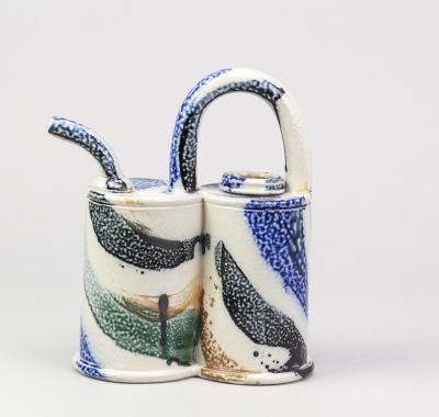 Lot 480 of 723: PETER MEANLEY (born 1944); a salt glazed spouted pouring vessel, impressed PM mark and dated 2019, height 22cm.