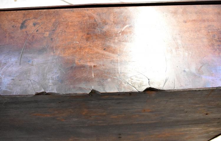 Lot 9 of 491: A George III mahogany bureau, the fall front revealing a fitted interior above two short and three long graduated drawers, on ogee bracket feet, 106 x 109 x 58cm.