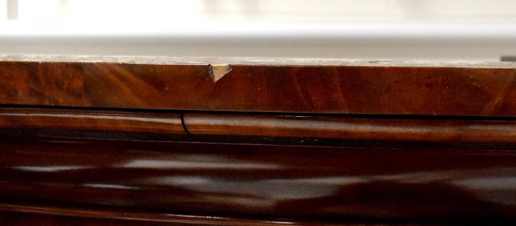 Lot 18 of 491: A Victorian mahogany linen press, two doors with arched raised panels, originally with five slides to the top (lacking one), above two-over-two drawers, to a plinth base, height 210cm, width 122cm.