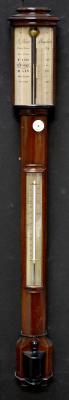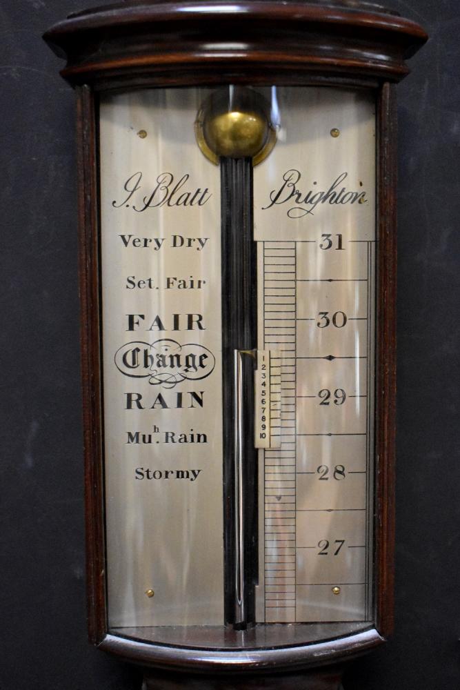 Lot 154 of 491: J Blatt; a reproduction mahogany-cased stick barometer, the silvered dial signed 'J Blatt Brighton' within a case with architectural pediment and with thermometer to the trunk, length 97cm.