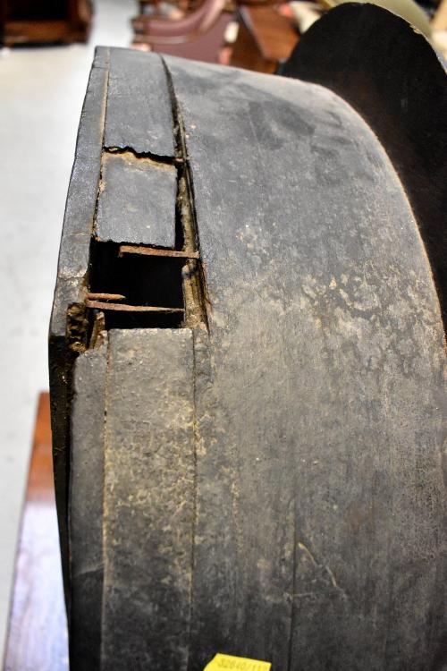 Lot 21 of 966: Antique oak shelves, the table top shelves with grape and flower carved dome top over three short shelves with shaped aprons on bracket feet, 80 x 63cm.