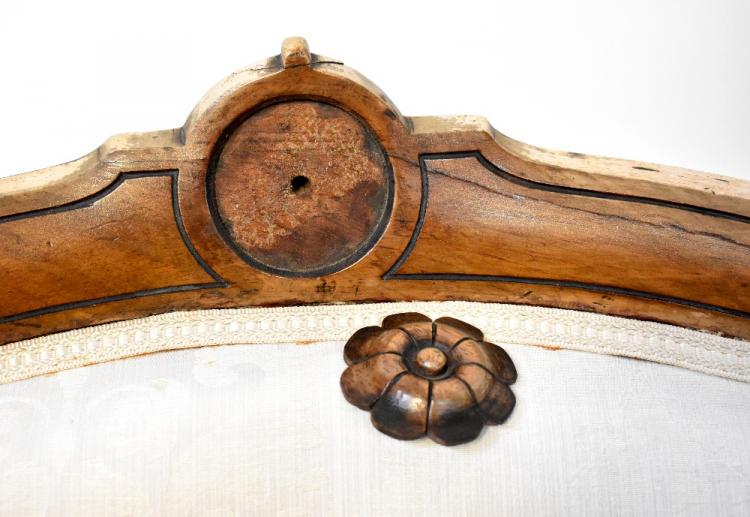 Lot 39 of 966: A Victorian walnut spoon back open armchair with scroll ends, upholstered in cream damask, on carved and reeded tapering legs to castors.