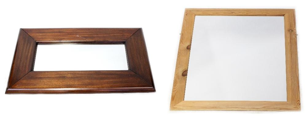 Lot 119 of 966: Three contemporary wall mirrors, a rectangular example with wide mahogany frame, 121 x 68cm, a rectangular pine-framed mirror, 117 x 85cm, and a black painted and gilded Oriental example, 77 x 83cm (3).