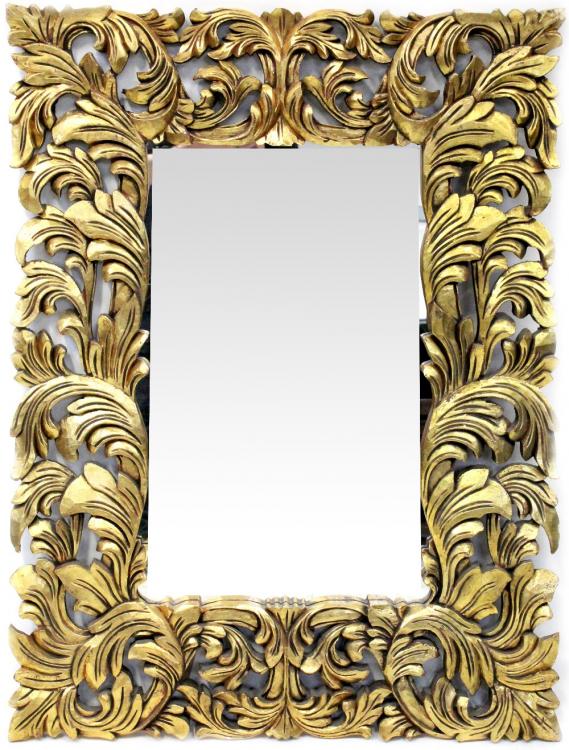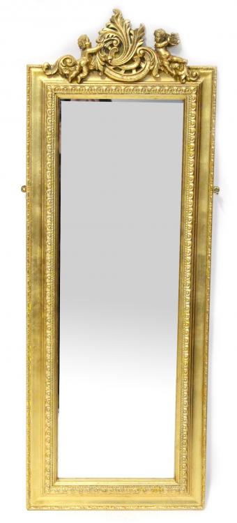 Lot 122 of 966: Two non-matching contemporary Rococo-style gilded wall mirrors, one rectangular example with deep ornate frame, 119 x 90cm, the other rectangular example with acanthus leaf and putti decoration to the top, 140 x 53cm (2).