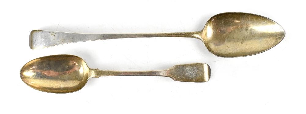 Lot 642 of 966: A George III large hallmarked silver basting spoon, London 1806, Thomas Wilkes Baker, length approx 30cm, and a Victorian silver tablespoon, London 1883, approx combined 5.1ozt (2).