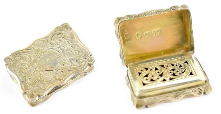 Lot 648 of 966: A Victorian hallmarked silver vinaigrette, Edward Smith, Birmingham 1846.