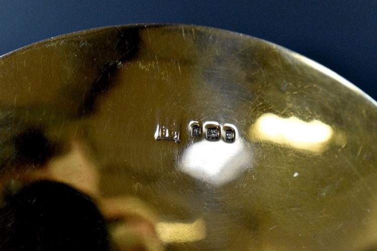 Lot 668 of 966: An Elizabeth II hallmarked silver gilt chalice with cherub faces to the column, to hexagonal curbed stepped base, H&F, Sheffield 2005, height 23cm, approx 23.6ozt, and a George V hallmarked silver gilt paten, with monogram to the centre, London 1926, approx 3.7ozt, both contained in blue velvet lined carrying case (2).