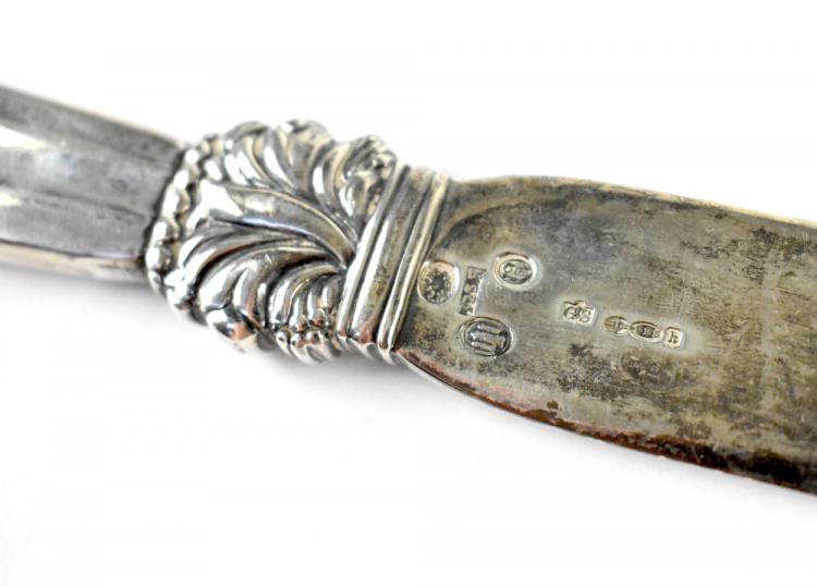 Lot 671 of 966: A Georg Jensen hallmarked silver Acorn pattern cake knife, length 27cm, approx 3.75ozt.