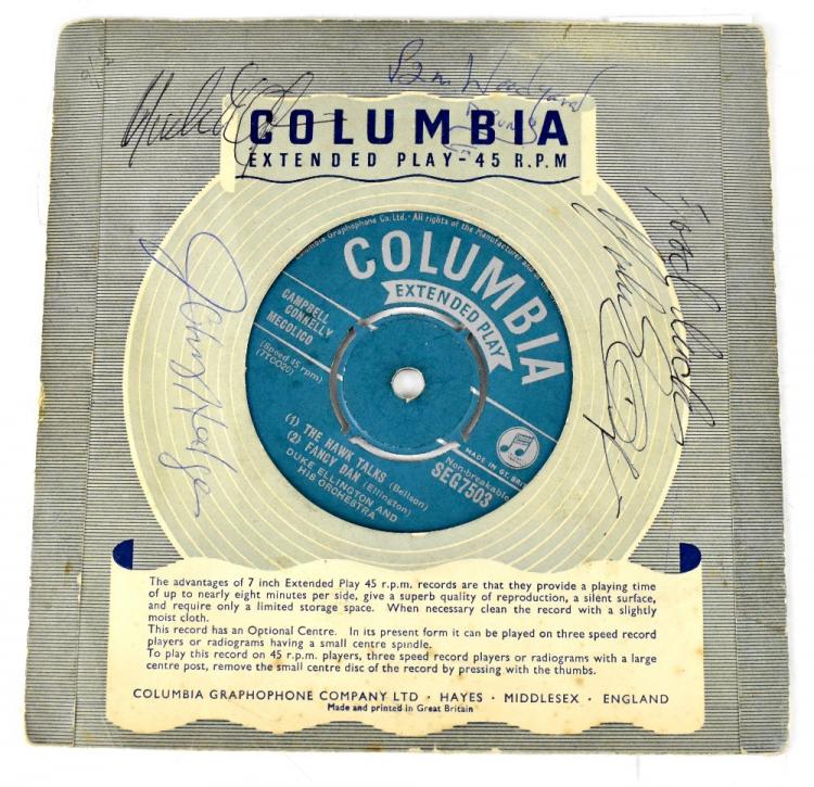 Lot 436A of 966: Duke Ellington and His Orchestra; a 7'' single bearing various signatures.