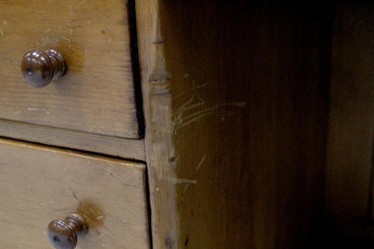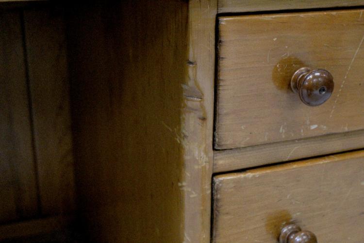Lot 18 of 898: An early 20th century pine nine-drawer twin pedestal desk, length 121cm, depth 59cm, height 76cm.