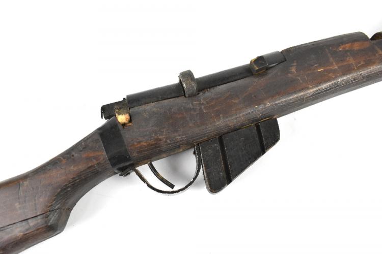 Lot 404 of 898: A WWI wooden British dummy drill training rifle/Home Guard practice rifle in the style of an Enfield bolt action with five-clip magazine, length approx 113cm.