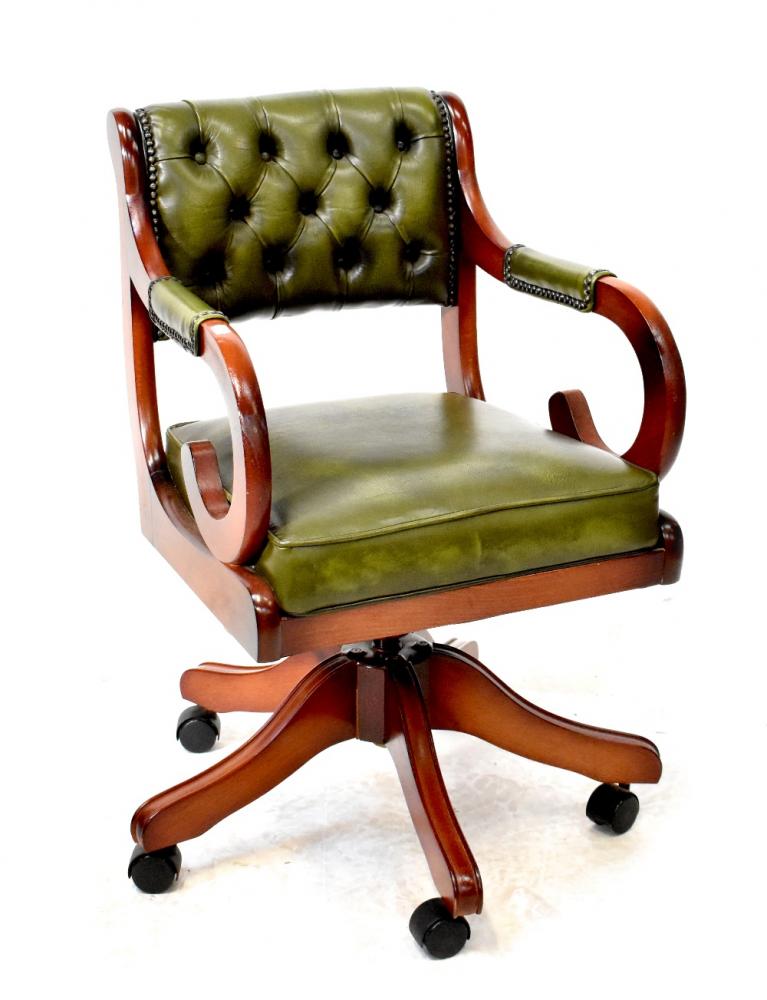 Lot 63 of 837: A reproduction button back swivel office chair in green leatherette, on a five-prong base with castors.