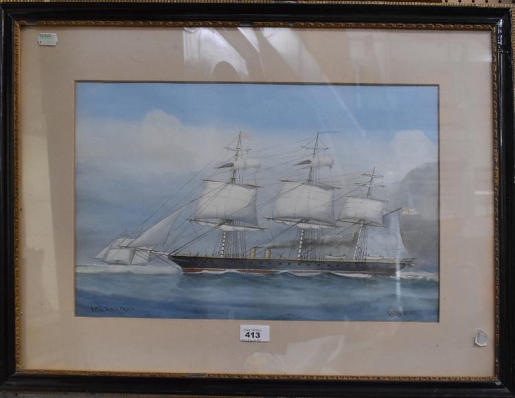 Lot 413 of 837: GH ANDREWS (British 20th century); watercolour, 'HMS Black Prince', study of a warship, signed and titled, 31 x 47cm, framed and glazed.