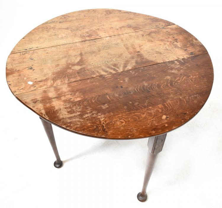 Lot 5 of 1291: A George III oval top drop-leaf side supper table, on turned tapering legs with pad feet, 73 x 115 x 122cm.