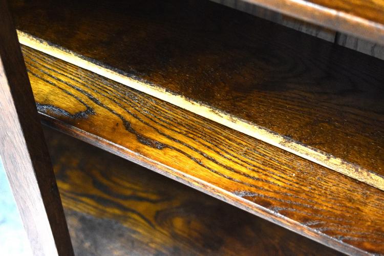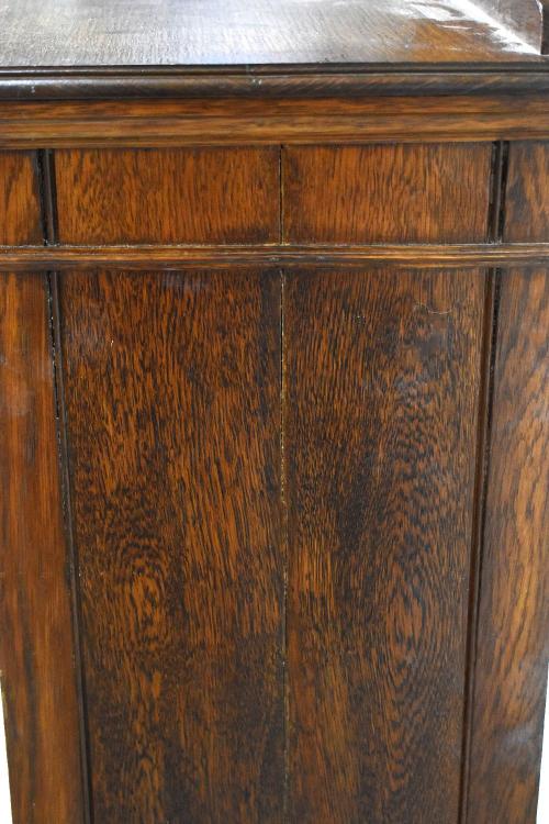 Lot 19 of 1098: An early 20th century oak two-door display cabinet with simple frieze decoration above pair of arched glazed doors and raised on turned and block stretchered supports, 123 x 91 x 30cm.