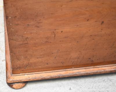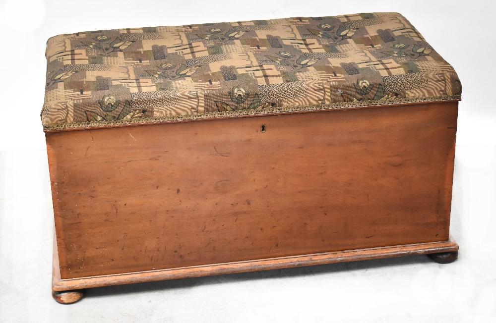 Lot 38 of 1098: A mahogany ottoman with upholstered padded seat lid, raised on squat bun feet, 57 x 105 x 54cm.