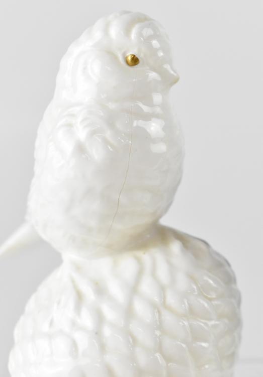 Lot 214 of 875: A small group of mixed ceramics to include a pair of Poole blanc de Chine lovebirds (one af), a Carltonware cabbage pattern small sauce boat and stand, yellow ground with floral decoration, two Walt Disney figures from the film 'Beauty and the Beast', 'Mrs Potts' and 'Chip' and a Royal Doulton figure 'Stiggins' (6).