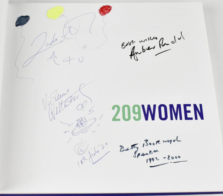 Lot 474 of 875: 209 WOMEN; a single volume bearing multiple signatures to three pages, including Betty Boothroyd, Glenda Jackson, Margaret Beckett and Amber Rudd.