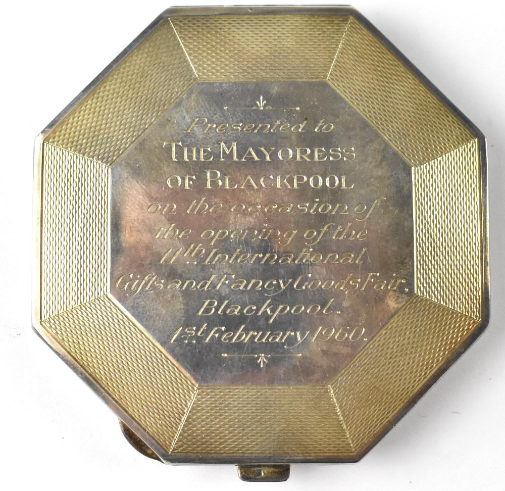 Lot 578 of 875: A 'Commander of the Order of the British Empire' (CBE) enamelled medal, with red and ivory silk neck ribbon, in original velvet and silk lined Toye, Kenning & Spencer Ltd London case, King George V created the Orders of the British Empires Award during WWI to reward services to the war effort by people helping back in the United Kingdom, and a hallmarked silver and ivory guilloché octagonal compact with Blackpool Mayoral coat of arms to the centre, inscribed verso 'Presented to the Mayoress of B