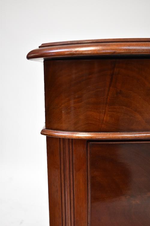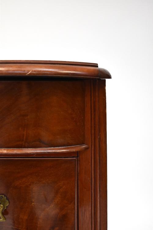 Lot 46 of 1053: A Victorian mahogany serpentine front three-drawer chest, to curving plinth base (possibly restyled from a larger piece of furniture), 85 x 90 x 56cm.