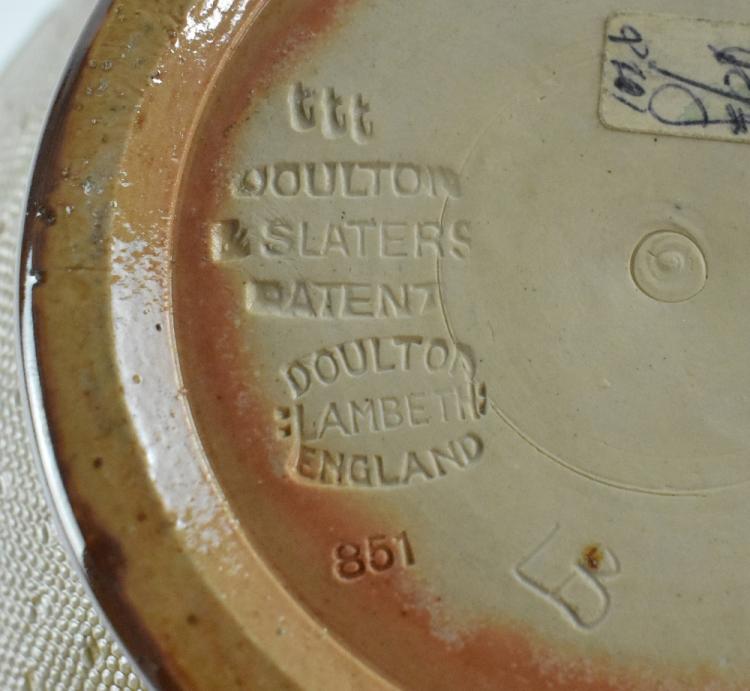 Lot 352 of 1053: ROYAL DOULTON; a large pair of early 20th century Doulton Lambeth baluster vases with long slender necks, neck in various shades of amber drip glaze, to amber and cream body with raised tube-lined floral and scroll decoration, incised to the base 'Doulton Slaters Patent', 'Doulton Lambeth England', initialled 'LB', height of each 41cm (2).