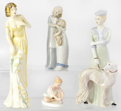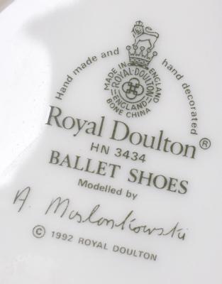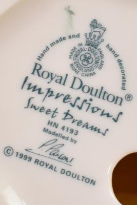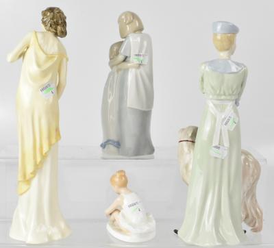 Lot 360 of 1053: ROYAL DOULTON; four figures comprising from the 'Reflections Collection' HN3116 'Park Side' and HN3130 'Sisterly Love', from the 'Impressions Collection' HN4193 'Sweet Dreams' and HN3434 'Ballet Shoes' (4).