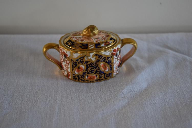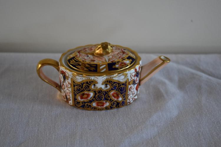 Lot 13 of 142: DAVENPORT; a miniature three piece tea set comprising teapot, twin handled sugar bowl and cover, and a jug, the teapot number 2614, the bowl number 2614, the jug number 6060, length of teapot 11.5cm.