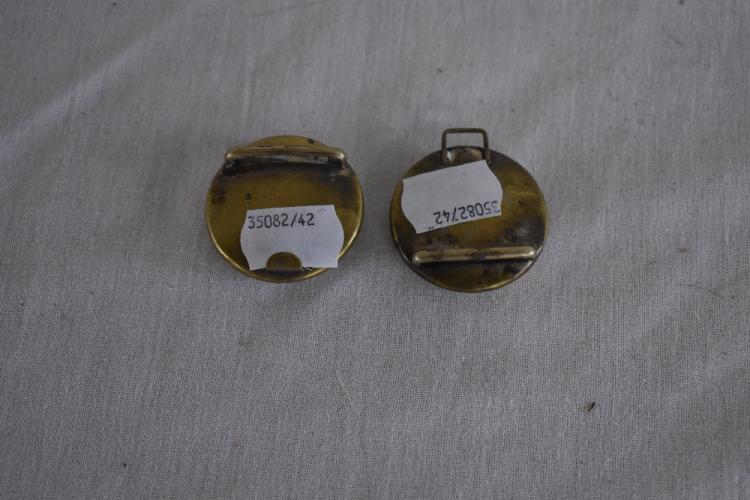 Lot 17 of 142: A Japanese Meiji period Satsuma pottery two sectioned buckle, decorated with chrysanthemum in a base metal frame, each approx 4cm.