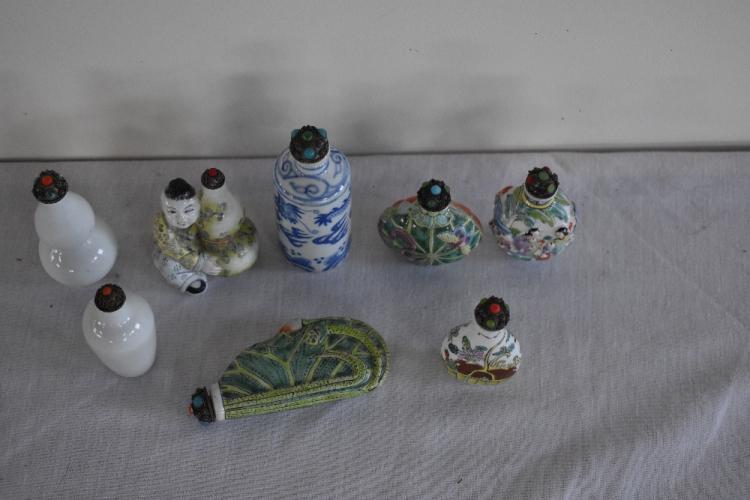Lot 22 of 142: Eight modern Chinese porcelain snuff bottles, all with stoppers.