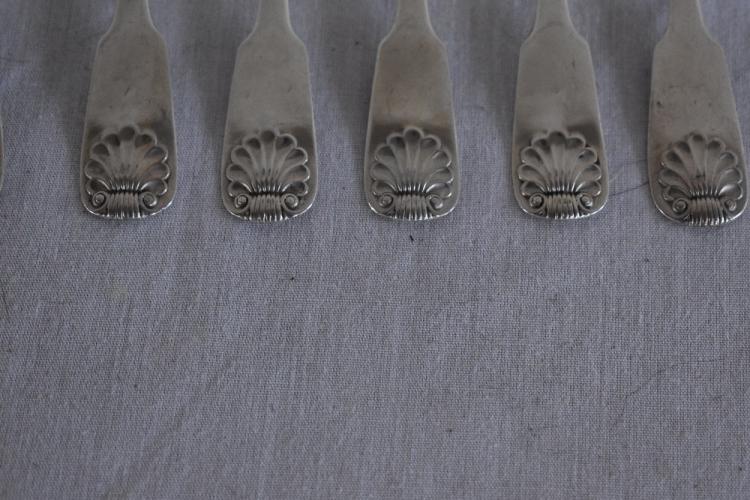 Lot 34 of 142: ELDER & CO; a set of six William IV hallmarked silver dessert forks, Edinburgh 1835, length 16cm, approx 7ozt/219g.