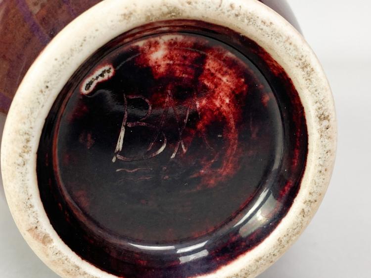 Lot 1 of 424: BERNARD MOORE (1850-1935); a stoneware vase covered in running flambé glaze, incised BM mark, made circa 1910, height 19cm.
