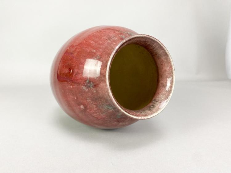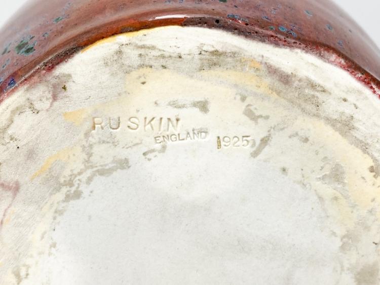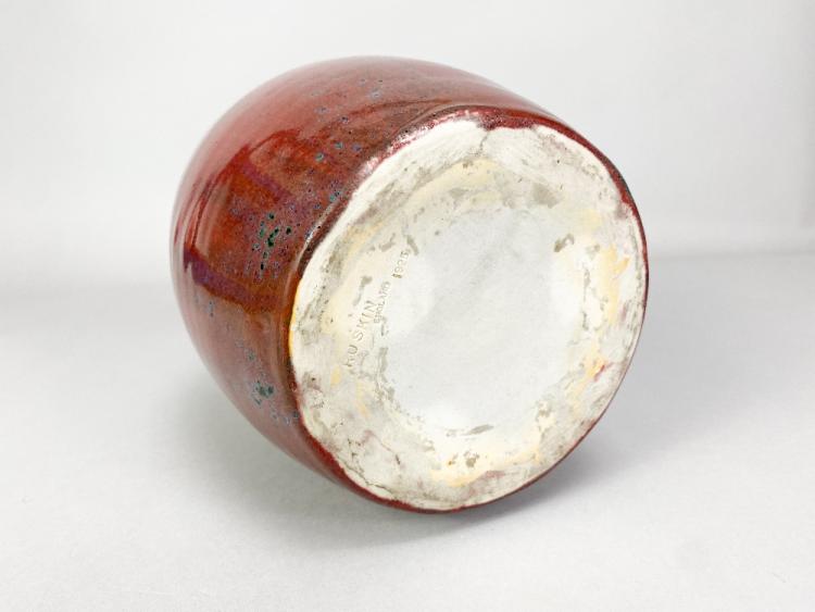 Lot 2 of 424: Ruskin Pottery; a high fired stoneware vase covered in mottled sang de boeuf glaze, impressed pottery mark and dated 1925, height 22.5cm.