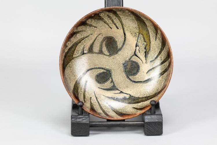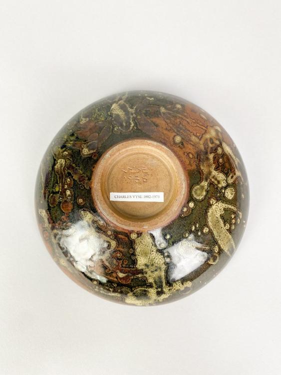 Lot 8 of 424: CHARLES VYSE (1882-1971); a stoneware footed dish with floral decoration, incised signature and dated 1938, diameter 19cm. (D)