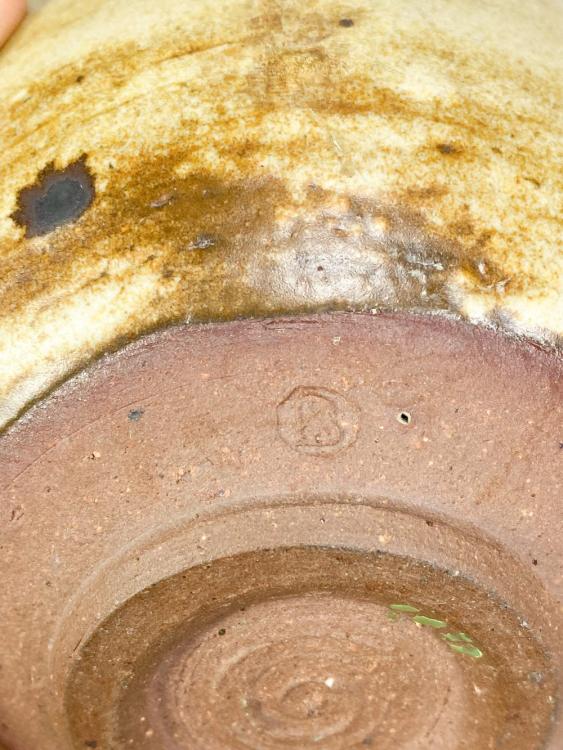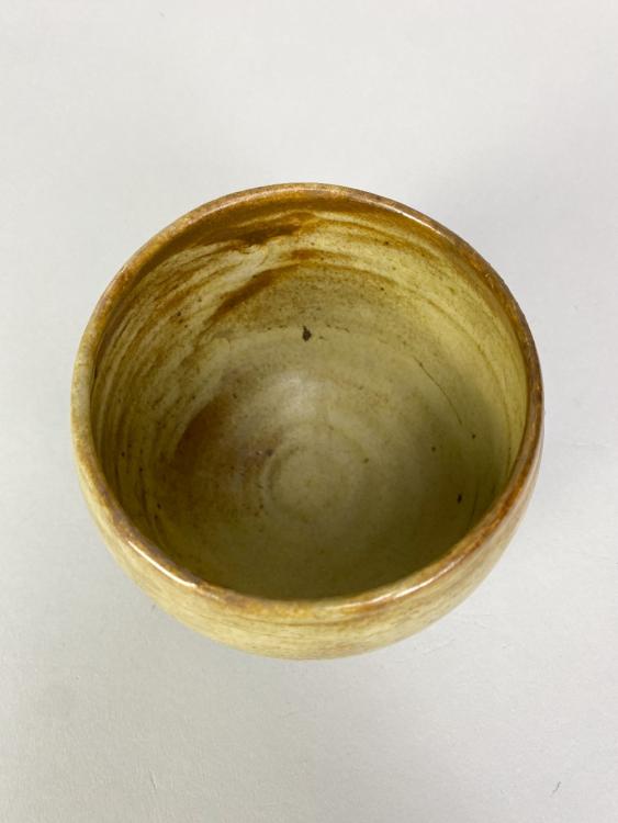 Lot 65 of 424: KATHARINE PLEYDELL-BOUVERIE (1895-1985); a stoneware bowl with iron decoration on oatmeal ground, impressed KPB mark and painted body/glaze codes, made 1933, diameter 11.5cm. (D) Provenance: David Whiting collection. PR – One of KPB’s prized pots (often marked with green on the base). Because of some firing cracks it was rejected by the Crafts Study Centre, Bath and ended up in one of the lots I bought at her estate sale. I had it restored and traded it to David Whiting (son of Geoffrey and o