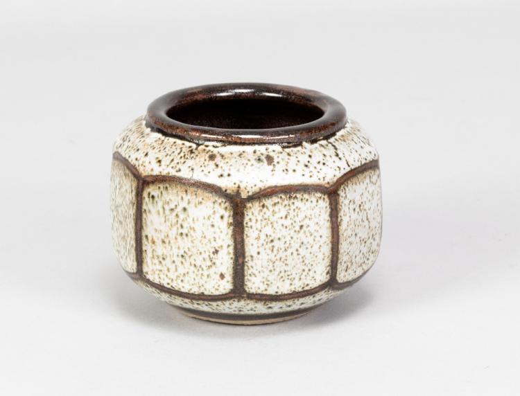 Lot 73 of 424: DAVID LEACH (1911-2005) for Lowerdown Pottery; a cut sided stoneware vase covered in dolomite glaze, painted DL mark, height 8.5cm. (D) Provenance: Michael Ristic collection.