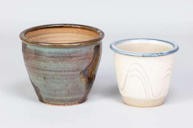 Lot 76 of 424: MICHAEL LEACH (1913-1985) for Yelland Pottery; two stoneware planters, impressed pottery marks, tallest 12cm (2). (D)