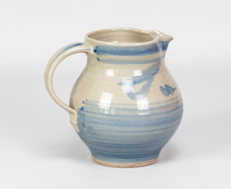 Lot 88 of 424: HARRY DAVIS (1910-1986) & MAY DAVIS (1914-1998) for Crowan Pottery; a stoneware jug with cobalt decoration on pale grey ground, impressed pottery mark, height 15.5cm. (D) Provenance: Michael Ristic collection.