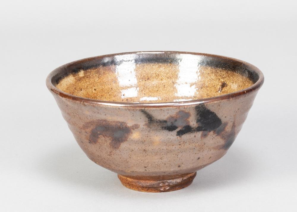 Lot 107 of 424: GEOFFREY WHITING (1919-1988) for St Augustine's Pottery; a stoneware chawan with iron decoration on lustrous iron rich ground, impressed pottery mark, diameter 14.5cm. (D) Provenance: Artist's collection. PR – This chawan and the vase in the next lot came from the Whiting family collection. They were the star pieces from an otherwise disastrous firing – as I recall, some of the wood was salt-preserved and it produced this lustre effect with the decoration largely burnt away. Whiting really lik