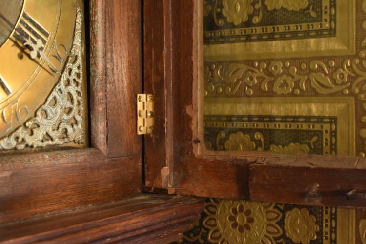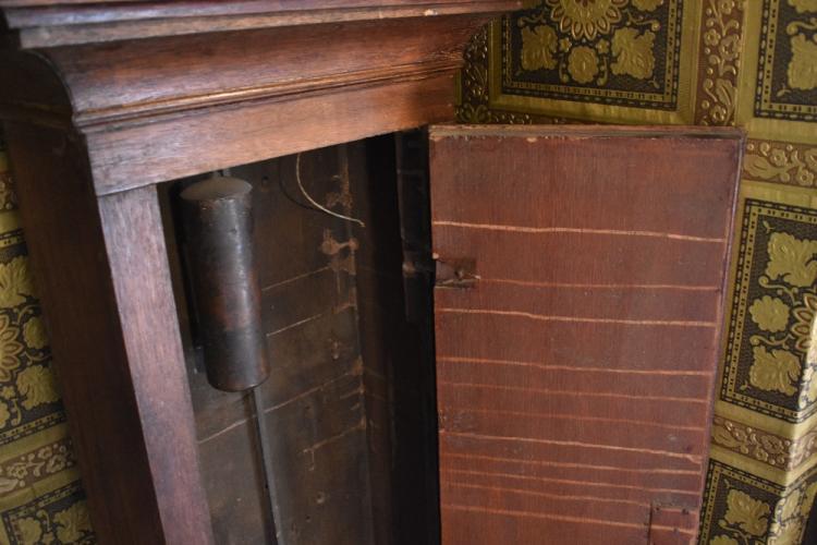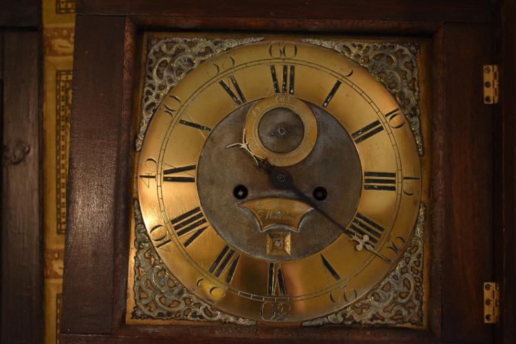 Lot 4016 of 312: HARRISON OF WOOLWICH; a George III oak eight day longcase clock, the matted centre with subsidiary dial and date aperture, with a brass chapter ring with Roman numerals, with movement striking on a gong, height 205cm. PROVENANCE: The Raymond Rush Collection. Mr Rush was an engineer, farmer and lay preacher who lived at Golden Cross Farm in Siddington, Cheshire. He was also a historian, broadcaster, author and speaker who regularly gave talks on local history, agricultural history and historic c