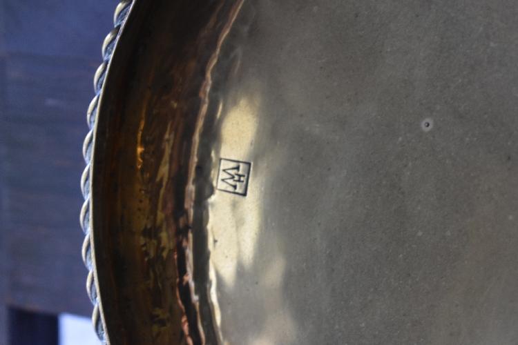 Lot 4021 of 312: HUGH WALLACE; two brass dishes, one circular, diameter 28.5cm, and one oval, length 52cm, both stamped (2). PROVENANCE: The Raymond Rush Collection. Mr Rush was an engineer, farmer and lay preacher who lived at Golden Cross Farm in Siddington, Cheshire. He was also a historian, broadcaster, author and speaker who regularly gave talks on local history, agricultural history and historic curios. In addition, he was also an accomplished maker of corn dollies. PLEASE NOTE: This lot is being sold in