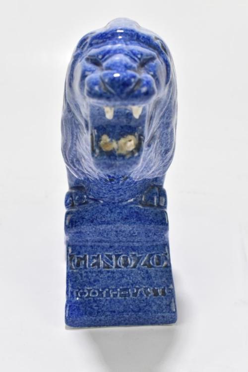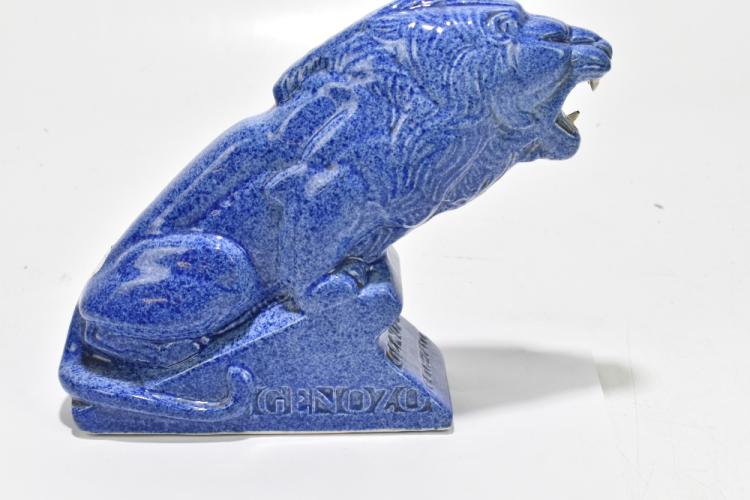Lot 27 of 3033: PERCY METCALFE FOR ASHTEAD POTTERS, EMPIRE EXHIBITION 1924; an advertising mottled blue Empire Lion advertising Genozo Toothpaste, printed marks to base, height 20.5cm.