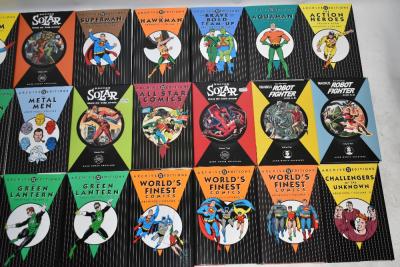 Lot 590 of 3033: DC ARCHIVE EDITIONS; a collection of forty seven volumes to include ADAM STRANGE, vols 1 and 2, JUSTICE LEAGUE, vols 1-8, THE FLASH, vols 1-5, DOOM PATROL, vols 1-4, SUPERGIRL, vols 1 and 2, CHALLENGES OF THE UNKNOWN, vols 1 and 2, LEGION OF SUPERHEROES, vols 1-5, WORLDS FINEST, vols 1-23, THE ATOM, vols 1 and 2, THE GREEN LANTERN, vols 1-6, METAL MEN, vol 1, with three DR SOLAR books and three ROBOT FIGHTER BOOKS.